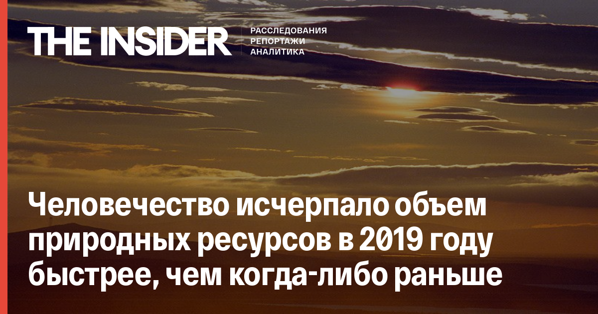 В 2019 году человечество исчерпало весь объем возобновляемых природных ресурсов — воды, почвы и воздуха, который планета может воспроизвести за год. Об этом сообщается в исследовании аналитического центра Global Footprint Network.