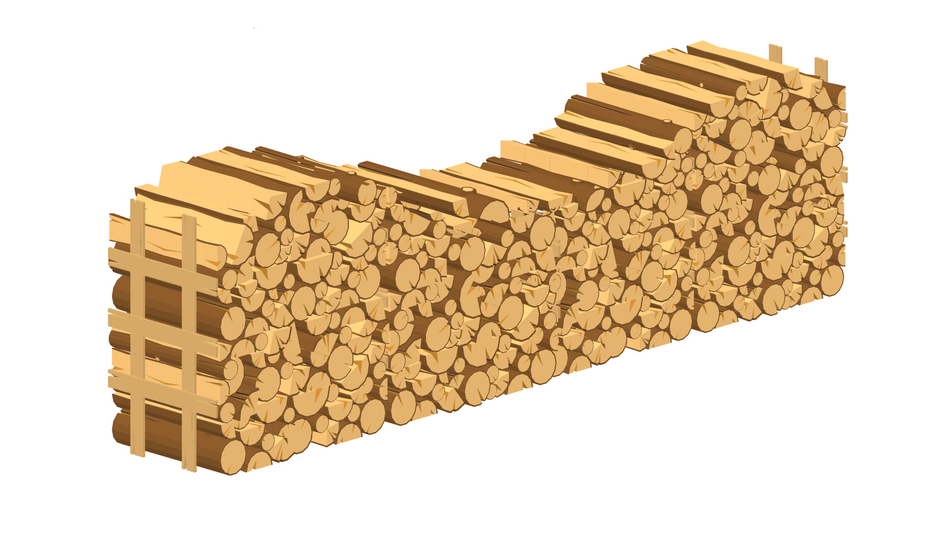 Компания производит экологически чистые деревянные окна для коттеджей. В качестве сырья используются бревна разных пород деревьев. Склад компании — открытая площадка за территорией завода. На заснеженном поле в три параллельные линии аккуратно сложены бревна. В каждой линии бревна только одной породы деревьев. Все бревна одинаковые по длине, но разные по диаметру. В одних местах высота укладки достигает около полуметра, в других — до 5 метров.