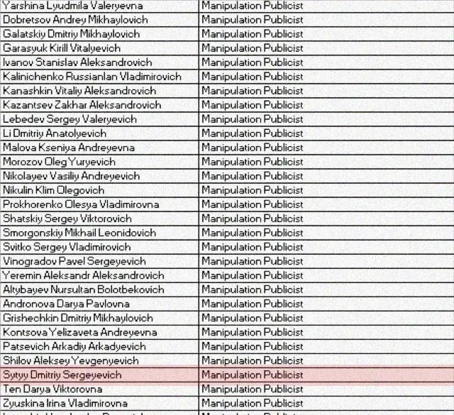В распоряжении Центра «Досье» оказался список сотрудников «Фабрики троллей» Евгения Пригожина. В нем Дмитрий Сытый указан в качестве сотрудника отдела переводов, осуществляющего манипулирование общественным мнением.