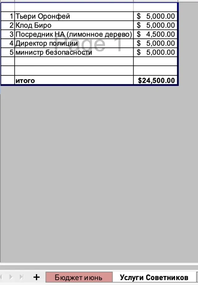 Центр «Досье» также получил документальные свидетельства, согласно которым «Компания» Пригожина ежемесячно выплачивает $5 000 каждому из своих «советников», включая директора полиции, министра безопасности и других членов кабинета президента ЦАР Туадеры.