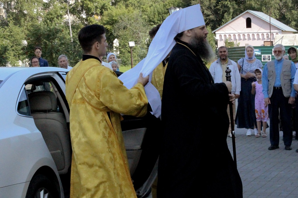Представительский автомобиль, на бампере которого изображен двуглавый орел на месте эмблемы Hyundai, проезжает через ворота и останавливается у ступеней паперти. Из салона выходит митрополит Новосибирский и Бердский Никодим. Послушники придерживают ткань клобука архиерея, пока ребенок дарит ему букет белых цветов. Прихожане поднимаются на второй этаж собора за Никодимом в просторный храм с иконостасом под куполом.