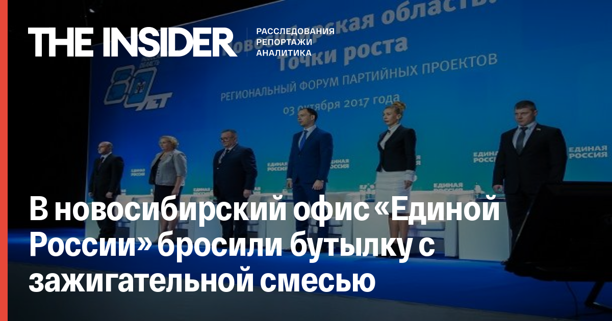 В окно офиса «Единой России» в Новосибирске была брошена бутылка с зажигательной смесью. Об этом сообщает РБК.