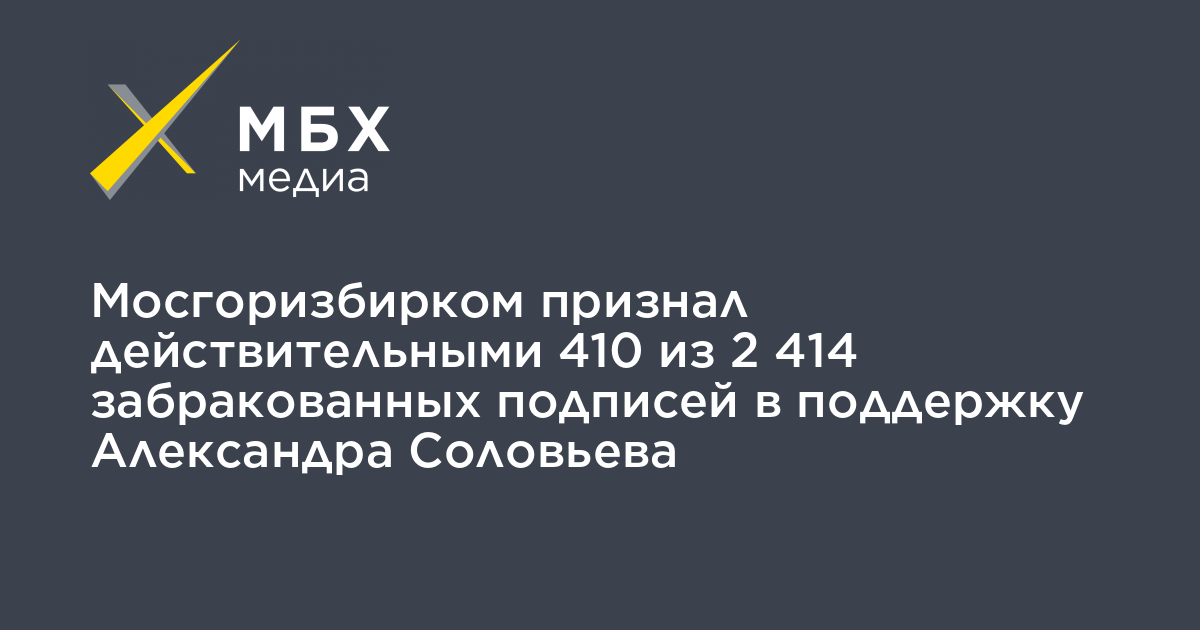 Мосгоризбирком признал действительными 410 из 2 414 забракованных подписей в поддержку Александра Соловьева