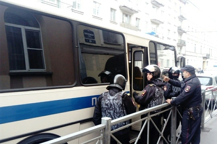 На акцию за честные выборы у петербургского Горизбиркома почти никто не пришел. Но полиция и Росгвардия всё равно надели бронежилеты и принесли ограждения