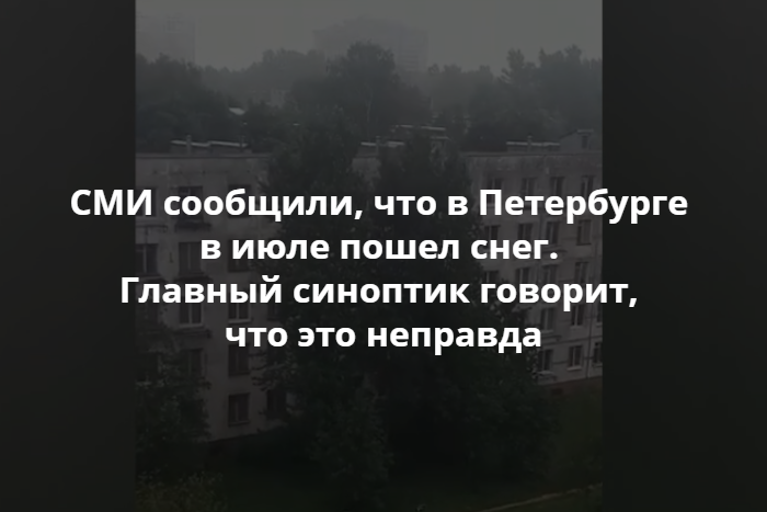 Вечером 30 июля СМИ опубликовали видео от очевидца, на котором якобы идет снег. Ролик был снят издалека, но издания назвали это снегопадом. Они отмечали, что снег идет в Московском районе Петербурга.