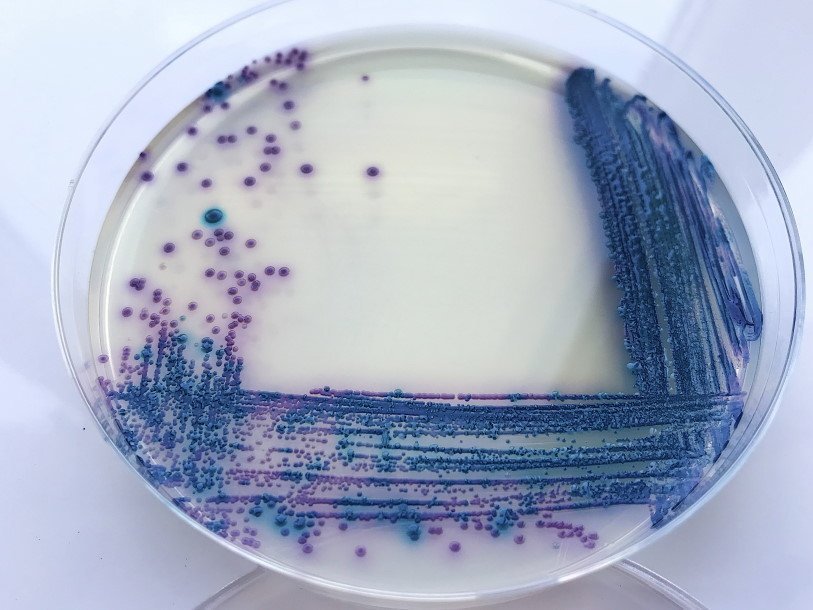 Но если уж и симптомы неприятные есть, и в посеве мочи кто-то обнаружился, тогда надо от незваных гостей избавляться. Они, эти гости, как самые настоящие гопники, иногда ходят парами. Вот как на фото — дуэт из Escherichia coli и Klebsiella pneumoniae. Эта чашка Петри, которую вы видите, — не первичный посев мочи, а уже попытка разрушить их прочный союз, чтобы с каждой культурой по отдельности дальше работать. Два микроба — значит, две постановки антибиотикочувствительности. Если повезёт, то в них найдутся пересечения, то есть один антибиотик будет убивать сразу обоих. За двумя зайцами, но с большим успехом, чем в пословице. Ну, а если не повезёт, то пациенту предстоит курс из двух антимикробных препаратов. Но главное, чтобы их назначал врач, а не Интернет, хотя вы это и сами понимаете, я надеюсь.