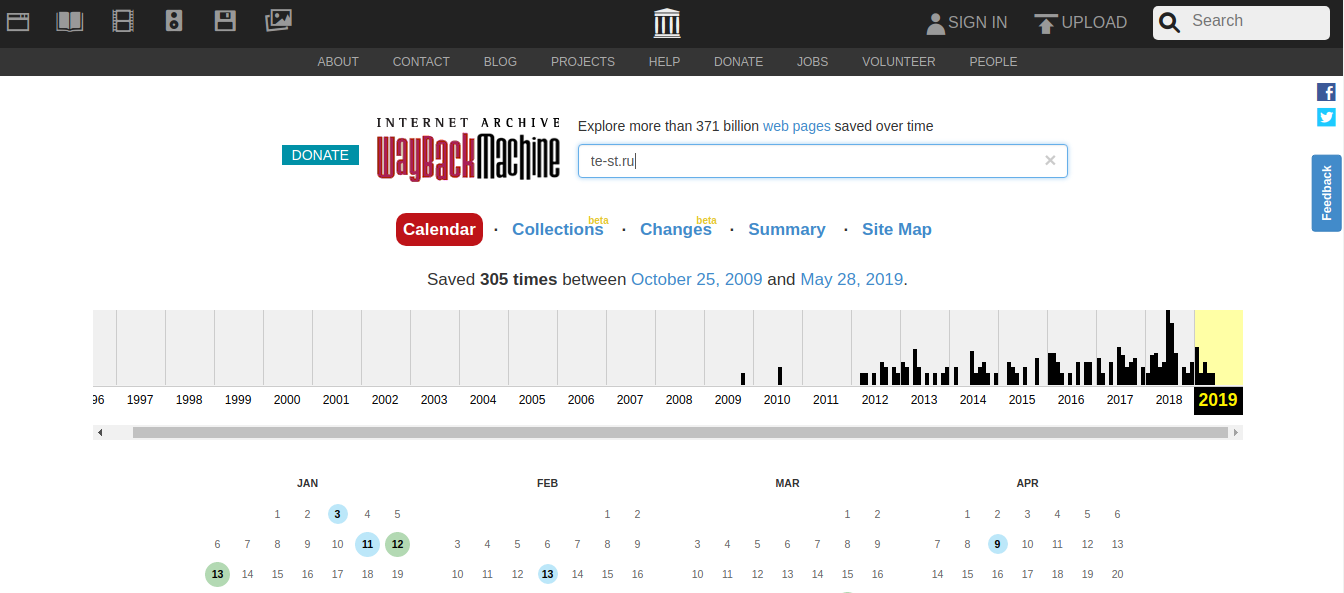 Поговорку «что упало, то пропало» удачно иллюстрирует интернет-архив archive.org. Если вы еще не пользовались его инструментом Wayback Machine, попробуйте. Сайт содержит миллиарды копий веб-страниц. С помощью Wayback Machine можно увидеть, что представлял собой сайт два, пять и даже десять лет назад. Для этого достаточно ввести адрес нужной страницы в форму.