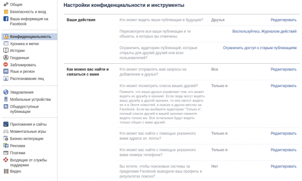 Facebook допускает ограничение аудитории ранее опубликованных сообщений. «Журнал действий» поможет вручную поискать среди прежних публикаций те, где, возможно, раскрывалась персональная информация. И Facebook, и «ВКонтакте» позволяют скачать всю вашу информацию целиком, что может быть полезно для селф-доксинга.