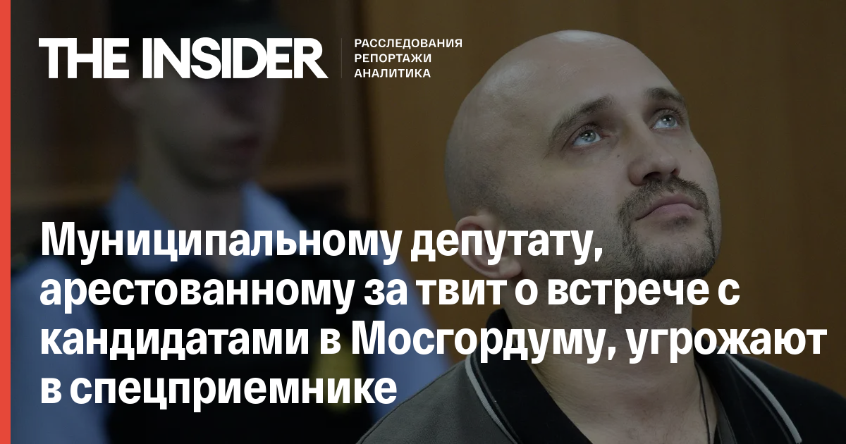 Муниципальному депутату, арестованному за твит о встрече с кандидатами в Мосгордуму, угрожают в спецприемнике