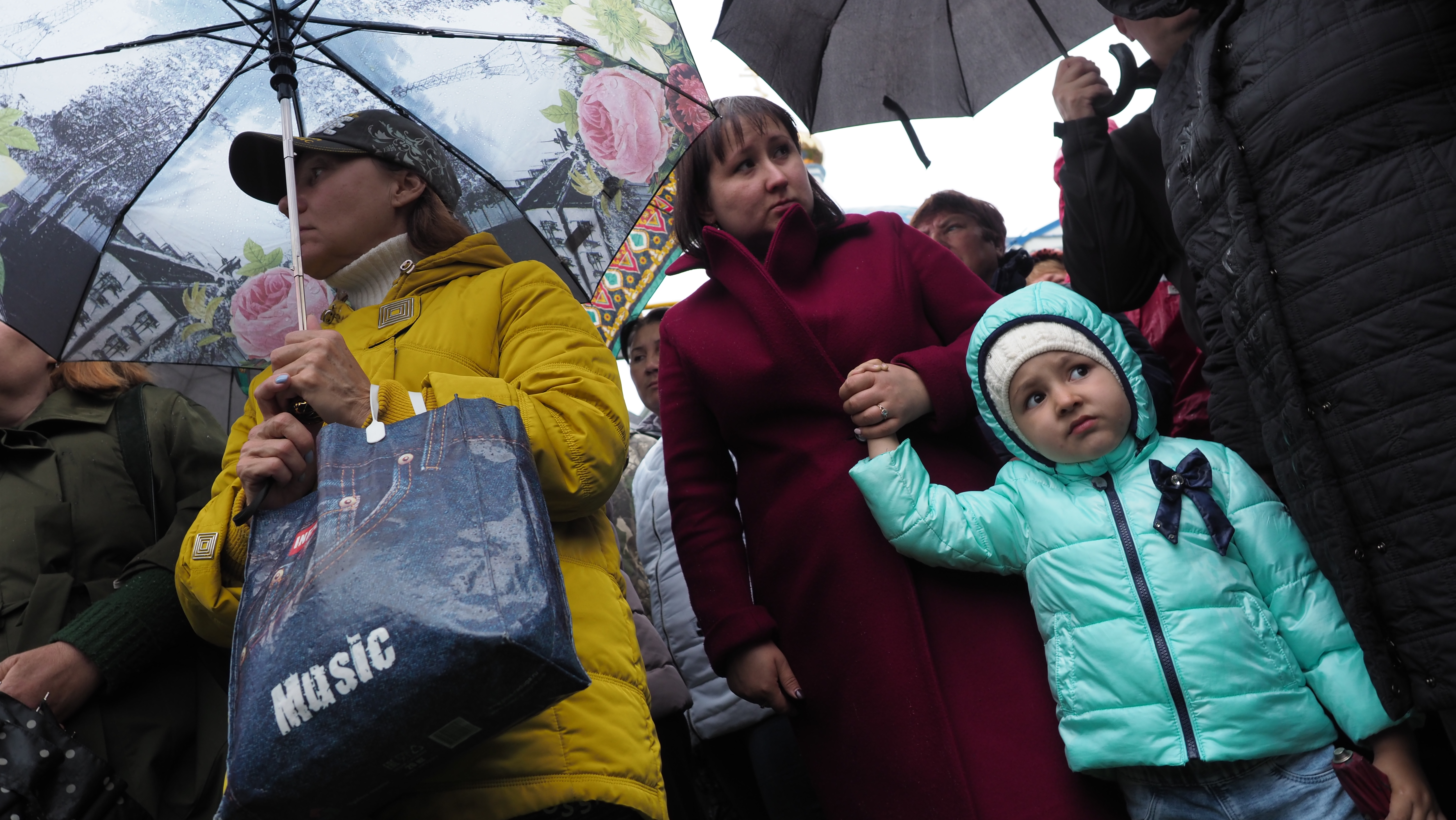 Народ собрался там же, где и год назад — у церкви Тихвинской иконы Божией Матери.