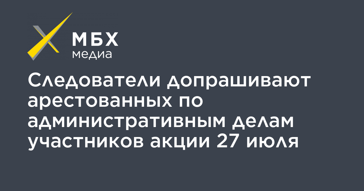Следователи проводят допросы участников акции 27 июля, которые были арестованы по административным делам и сейчас находятся в спецприемниках. Об этом «МБХ медиа» сообщил адвокат «Правозащиты Открытки» Сергей Бадамшин.