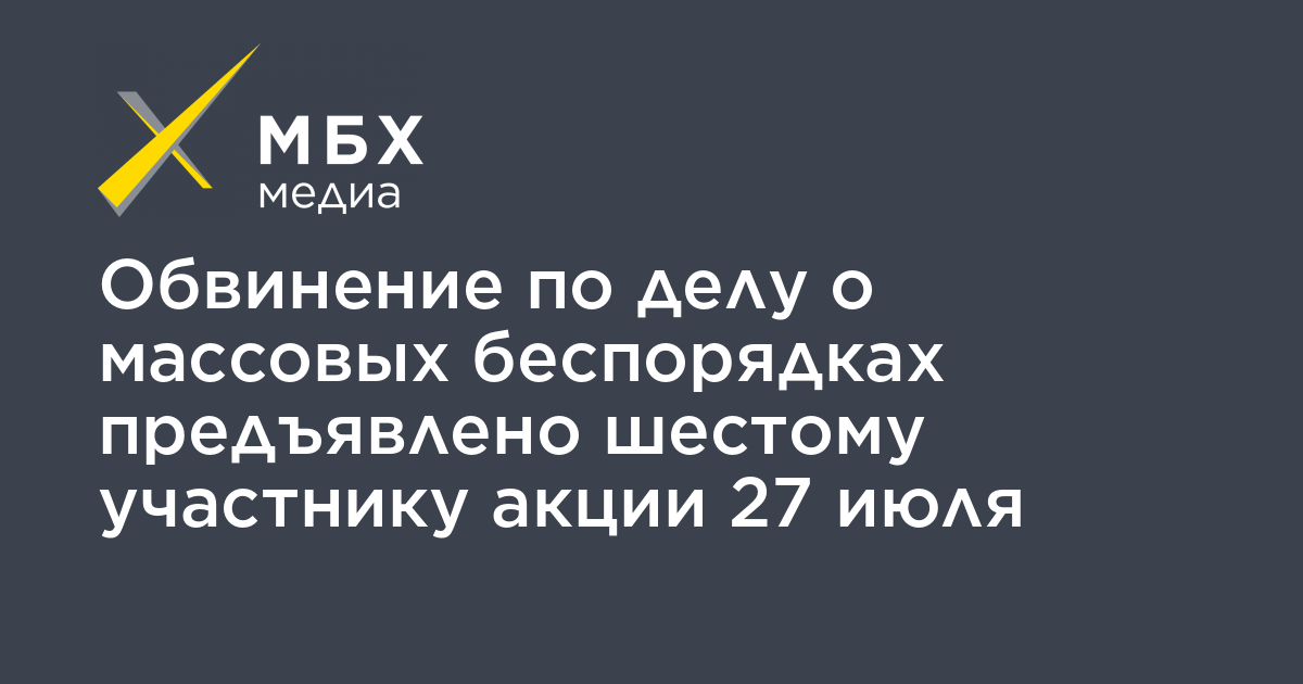 Обвинение по делу о массовых беспорядках предъявлено шестому участнику акции 27 июля