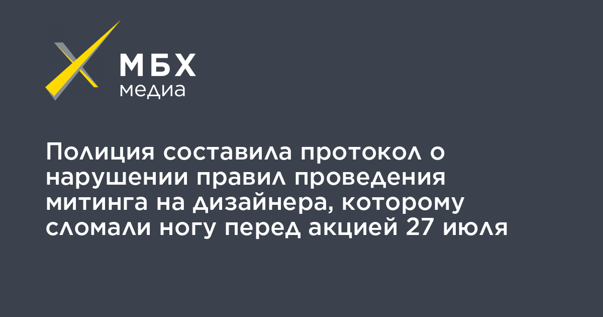 Полиция составила протокол о нарушении правил проведения митинга на дизайнера, которому сломали ногу перед акцией 27 июля