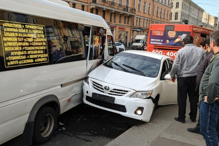 На Сенной площади автомобиль въехал в маршрутку на остановке транспорта