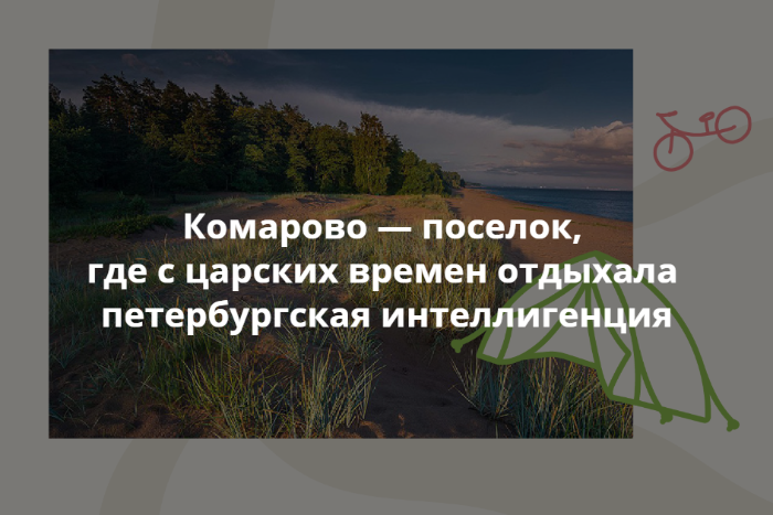 Комарово — поселок на Карельском перешейке, где с царских времен отдыхала петербургская интеллигенция. Здесь можно полюбоваться деревянными домами начала XX века, прогуляться по экотропе в сосновом лесу и заглянуть в «будку», где жила Анна Ахматова.