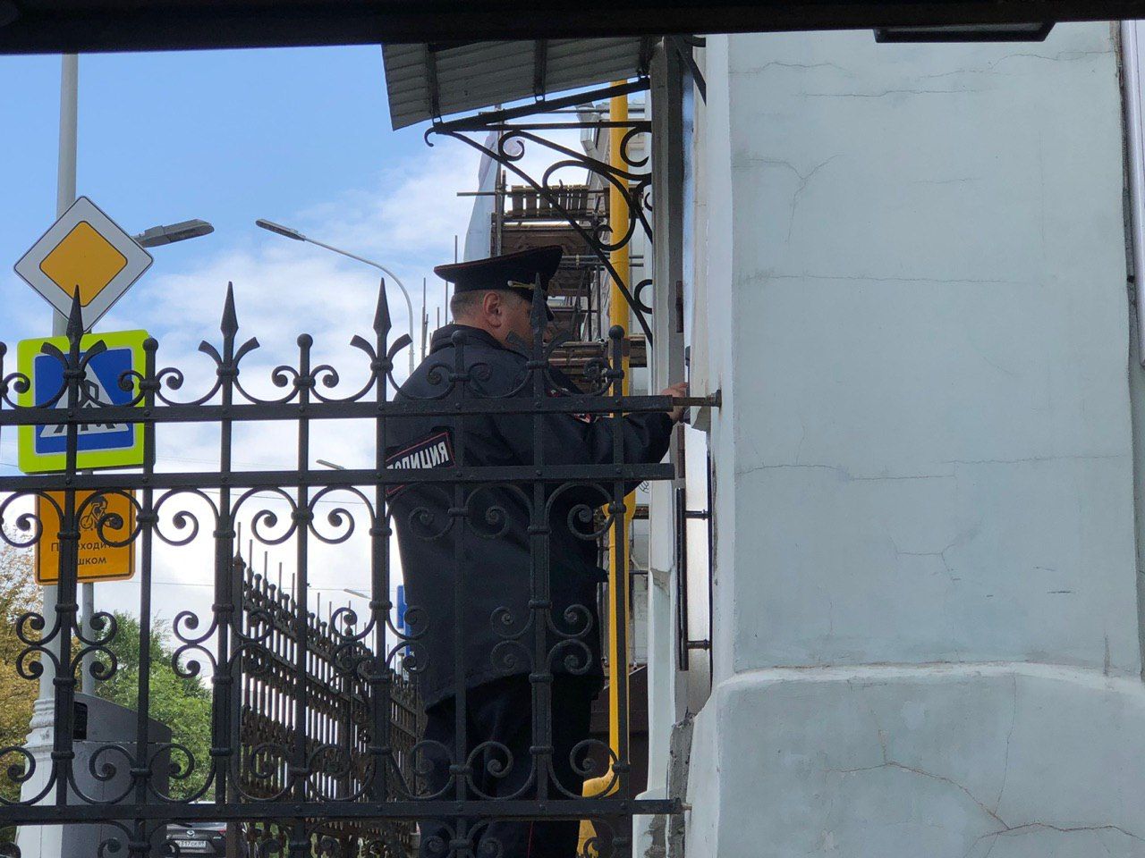 Полиция проверяет документы у штаба Соболь. Похоже, что у всех, проходящих или проезжающих мимо