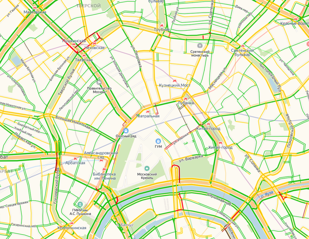 Вот так выглядит центр Москвы субботним днем