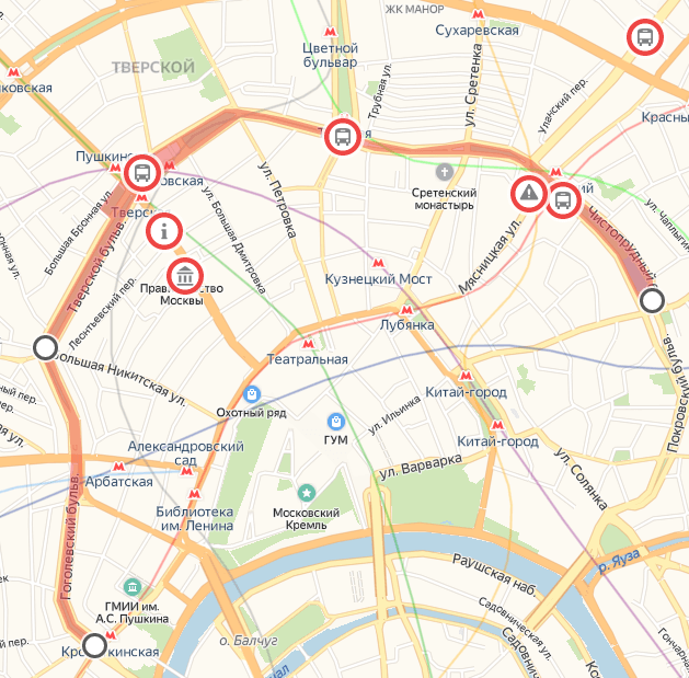 Не рекомендуется выходить на станциях метро «Трубная», «Цветной бульвар», «Чеховская», «Пушкинская», «Тверская» и «Чистые пруды». Пока они открыты, но там могут остановить на досмотр или вручить предостережение. Скорее всего, в ближайшее время они будут полностью или частично закрыты на выход. Рекомендую рассмотреть вариант с автобусами, благо в центре их много.