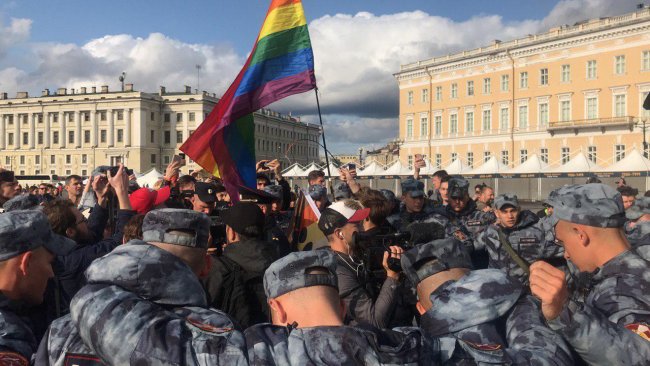 В Петербурге на Дворцовой площади задержали участников акции за права ЛГБТ. Об этом пишет «Дождь». В телеграм-канале «Помощь задержанным СПБ» написали об 11 задержанных.