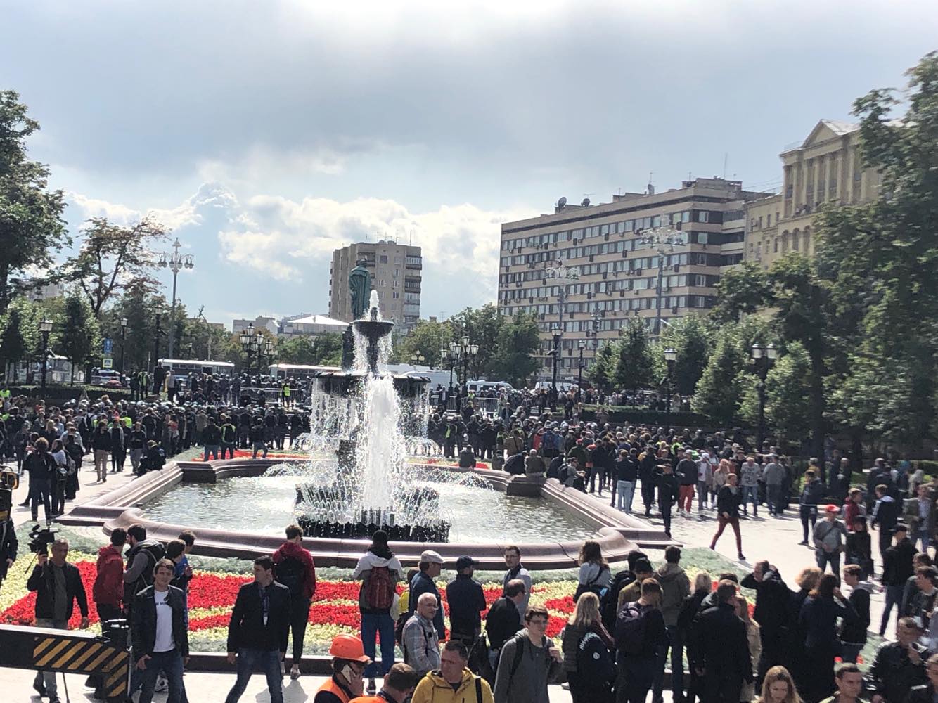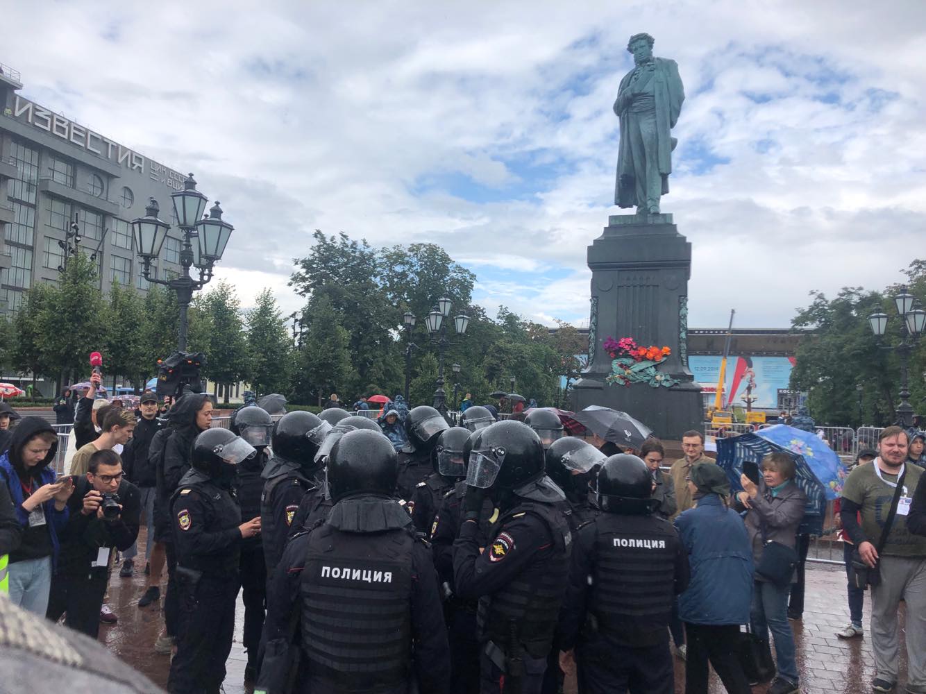 Много полиции на Пушкинской площади, прямо у памятника поэту.