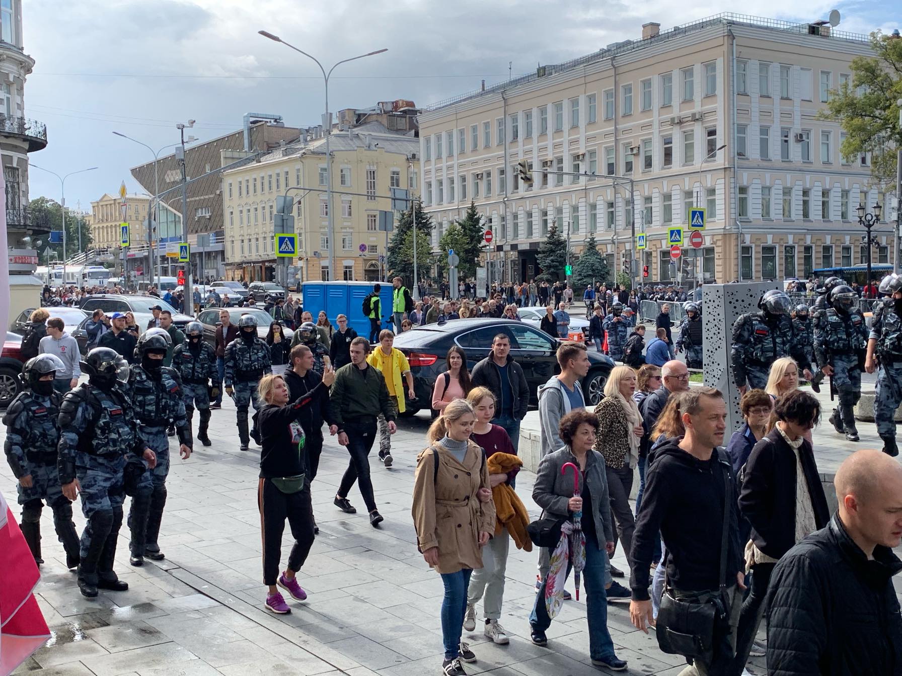 Перекрыты Большая Дмитровка, Трубная, Неглинная, Страстной бульвар. Протестующих выдавливают с Пушкинской улицы.