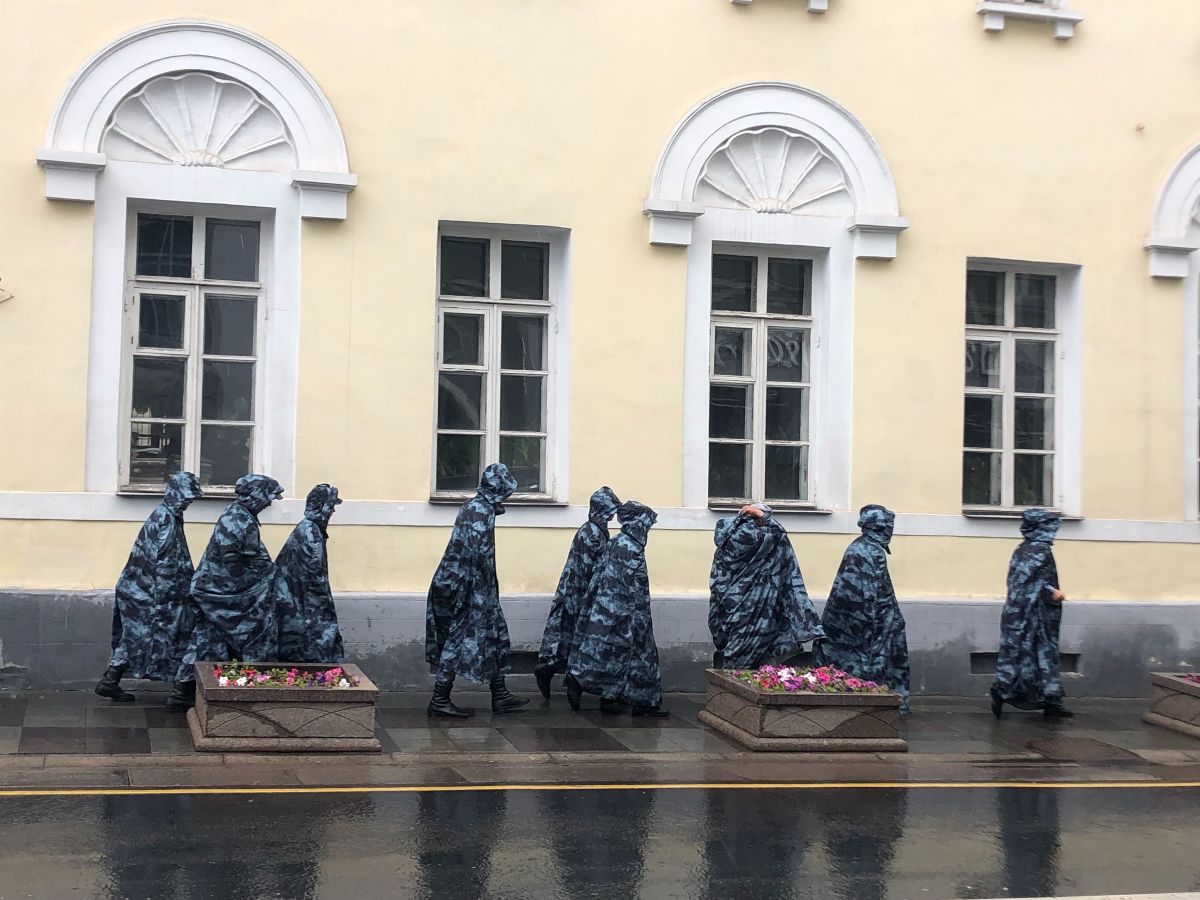 В центре Москвы ливень, но ОМОН был готов и к нему.