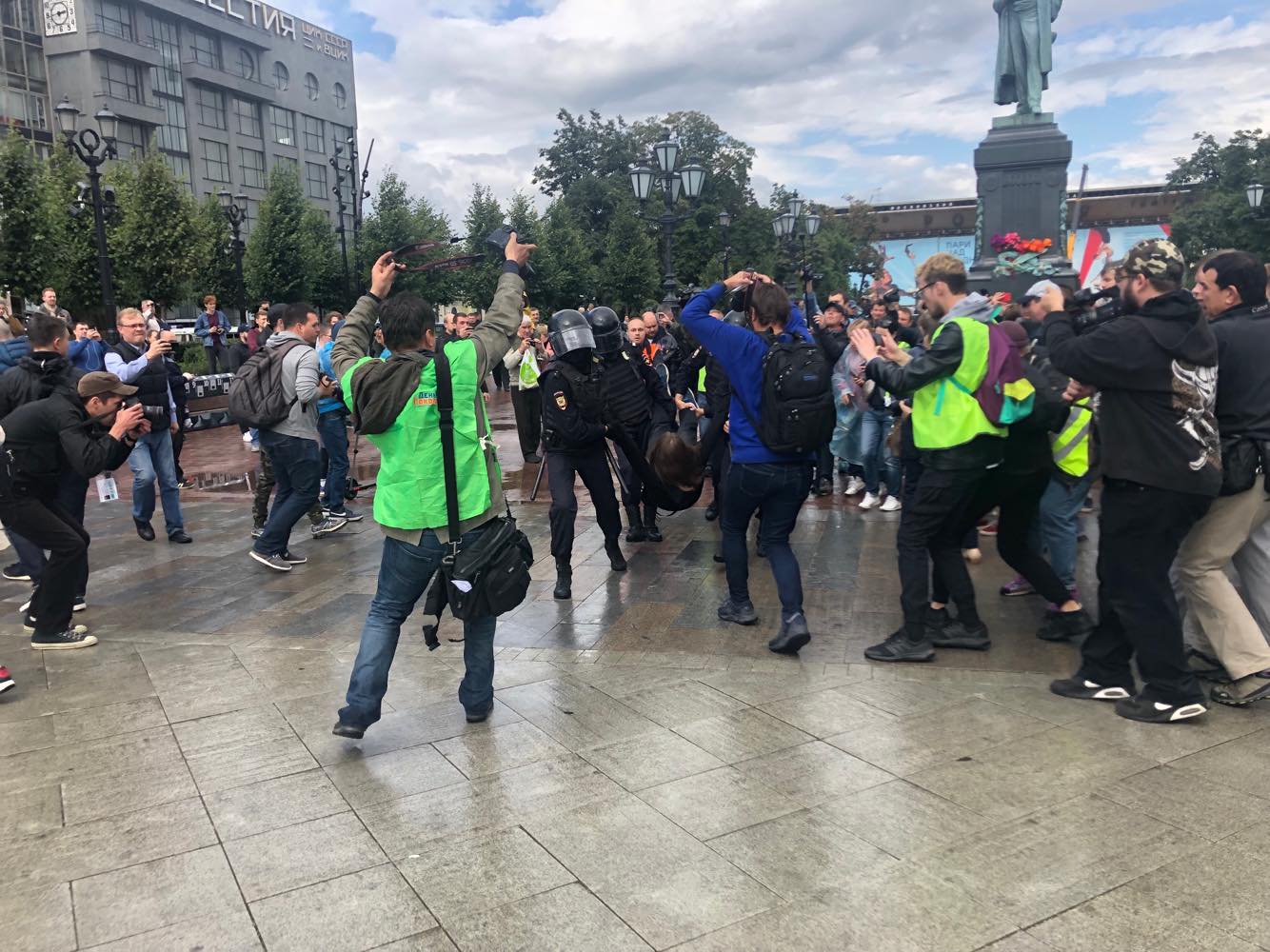 - Центрами протестов стали Пушкинская и Трубная площади. Там же прошли основные задержания. К 18.00 оттуда протестующих вытеснили, много людей перешли на Арбат.