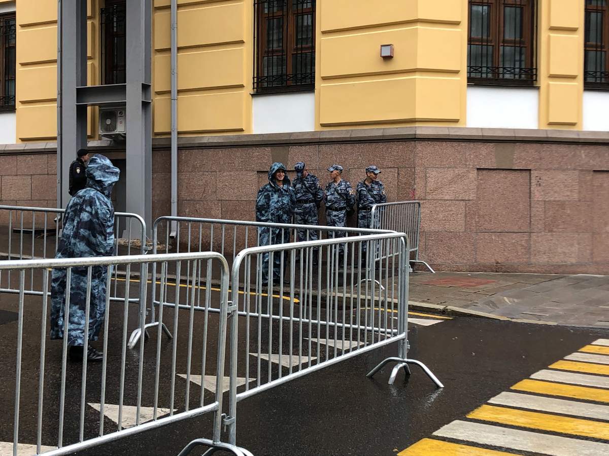 В начале Сретенского бульвара только что было так: полиции намного больше гуляющих очень быстрым шагом москвичей.