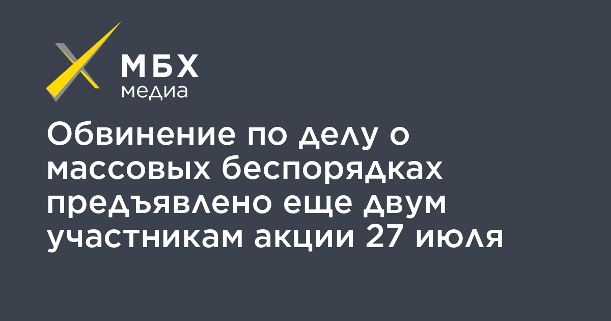 Обвинение по делу о массовых беспорядках предъявлено еще двум участникам акции 27 июля