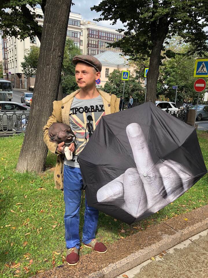 В 14:00 (начало «групповых пикетов», как назвали акцию организаторы — независимые и незарегистрированные кандидаты в депутаты Мосгордумы, которые все, за исключением Любови Соболь, юриста из ФБК, сидят сейчас по разным спецприёмникам со сроками от недели до 30 суток) на Пушкинской площади и Страстном бульваре людей почти не было видно. На Страстном, в конце бульвара, стояла пара автозаков, вокруг которых толклись инфантильно покуривающие полицейские. По Петровского бульвару вниз к Трубной шла все увеличивающая цепочка людей под зонтиками — шел проливной дождь, на Трубной уже была видна толпа, но еще больше — «космонавтов» Росгвардии и людей в голубом полицейском камуфляже. Я вышла из машины на Рождественском бульваре — там шла уже внушительная и все увеличивающаяся толпа людей, состоявшая в основном из молодых людей, но не пацанов — те, кого обычно называют постдоки, то есть уже закончившие бакалавриат и либо работающие, либо пишущие диссертации, 25-30 лет.
