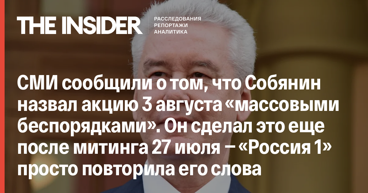 ТАСС, а вслед за ним РБК, Znak.com, "МБХ медиа", «Говорит Москва» и другие российские СМИ сообщили о том, что мэр Москвы Сергей Собянин назвал акцию за честные выборы, прошедшую 3 августа, «массовыми беспорядками».