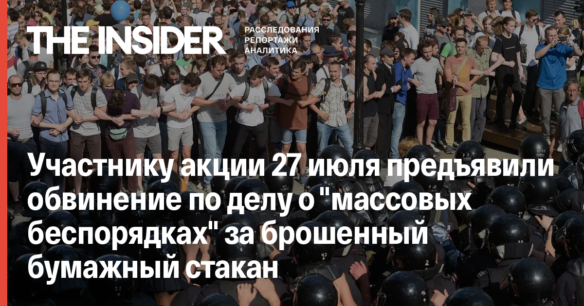 Участнику акции 27 июля предъявили обвинение по делу о "массовых беспорядках" за брошенный бумажный стакан