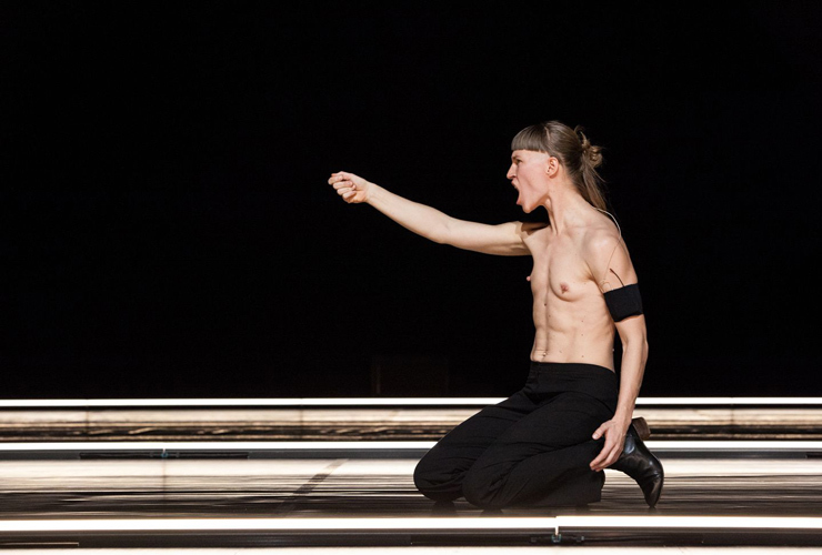 © Radovan Dranga Флорентина Хольцингер. Apollon musagète Так, в спектакле «Apollon musagète» (2017), ироническом оммаже балету Стравинского 1928 года, Хольцингер показывает жизнь муз, свободных от необходимости нравиться богу Аполлону. Шесть суперженщин скачут на быке, демонстрируют опасные цирковые номера, занимаются пауэрлифтингом, играют с лассо и танцуют на пуантах. Коллажируя цитаты из фрик-шоу с Кони-Айленд, феминистского перформанса 1970-х, порнофильмов и оригинального балета, художница демонтирует порнографический взгляд и создает безумную феминистскую утопию, в которой знакомые эротические сцены всегда оказываются не тем, чего ожидаешь.