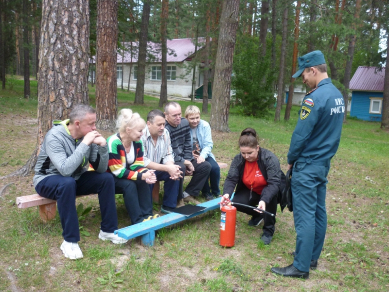 Сотрудники МЧС провели для руководства и персонала лагеря противопожарный инструктаж по действиям при угрозе или возникновении пожара, а также проверили необходимую нормативную документацию и наличие плана эвакуации в лагере, состояние противопожарного водоснабжения и наличие первичных средств пожаротушения.