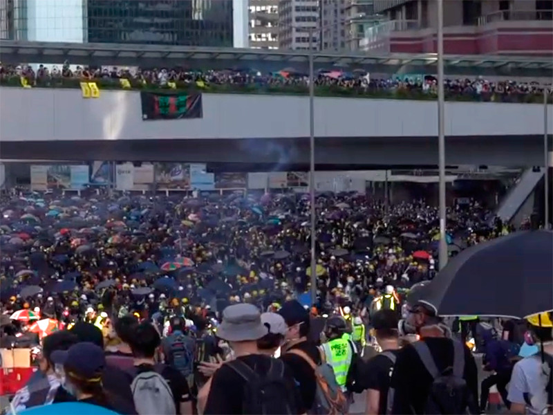 В понедельник Гонконг охватила новая волна демонстраций на фоне призывов оппозиционных сил ко всеобщей забастовке. Полиция неоднократно применяла для разгона собравшихся слезоточивый газ, в том числе в центральном квартале Адмиралти, где находится правительственный комплекс.