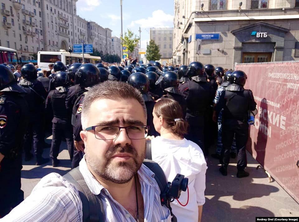 – Все было замечательно, пока, дойдя до Трубной, мы не вернулись на Петровку. Там "космонавты" начали перекрывать движение и задерживать людей, мы все это снимали. Когда было очередное жесткое задержание, я одному из сотрудников в маске и шлеме, сказал, в кавычках, конечно, что им будет гордиться его семья, а дети будут счастливы, что их папа бьет людей на улице и ему за это ничего не бывает. Он, видимо, оскорбился и спросил, как меня зовут. Я представился. Он нет. Заломал мне руку и повел в автозак. Нас привезли в ОВД "Печатники", – рассказал Орел Радио Свобода.