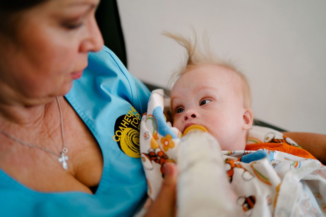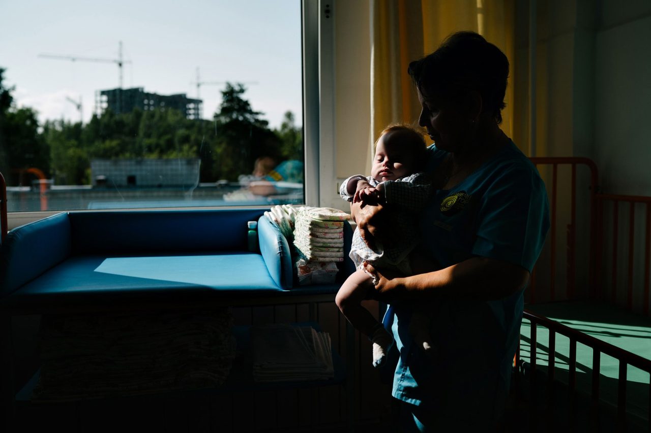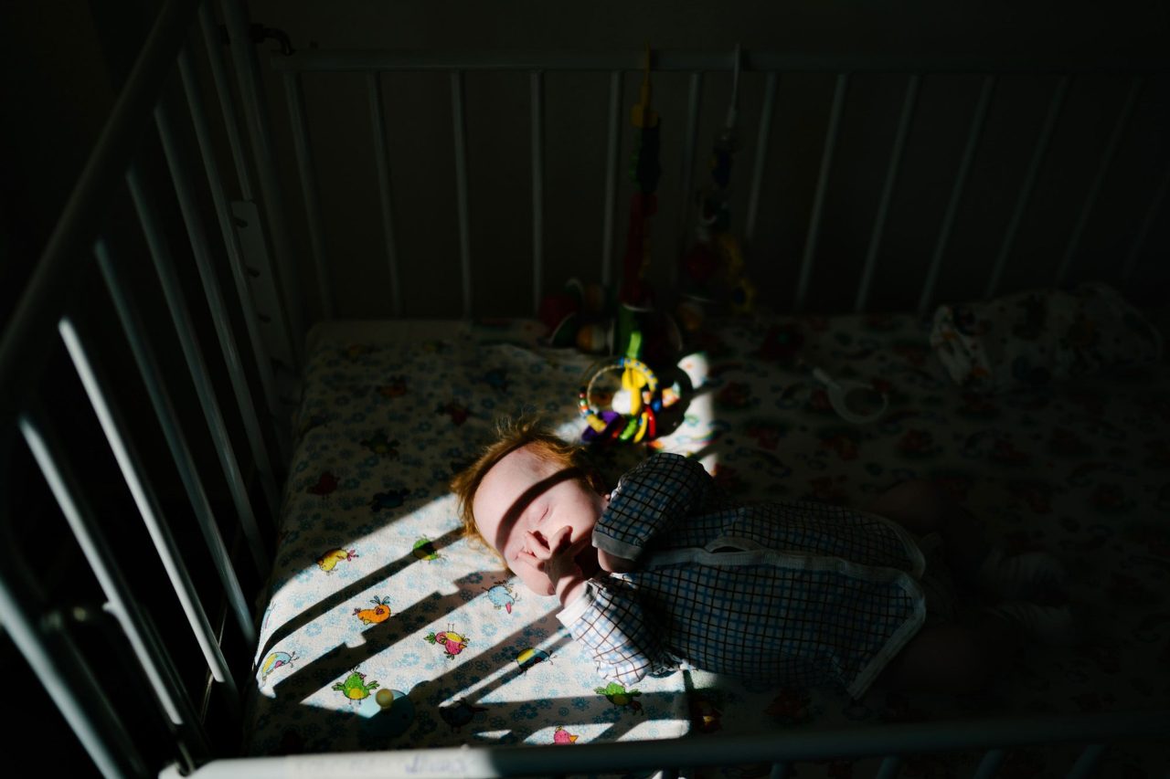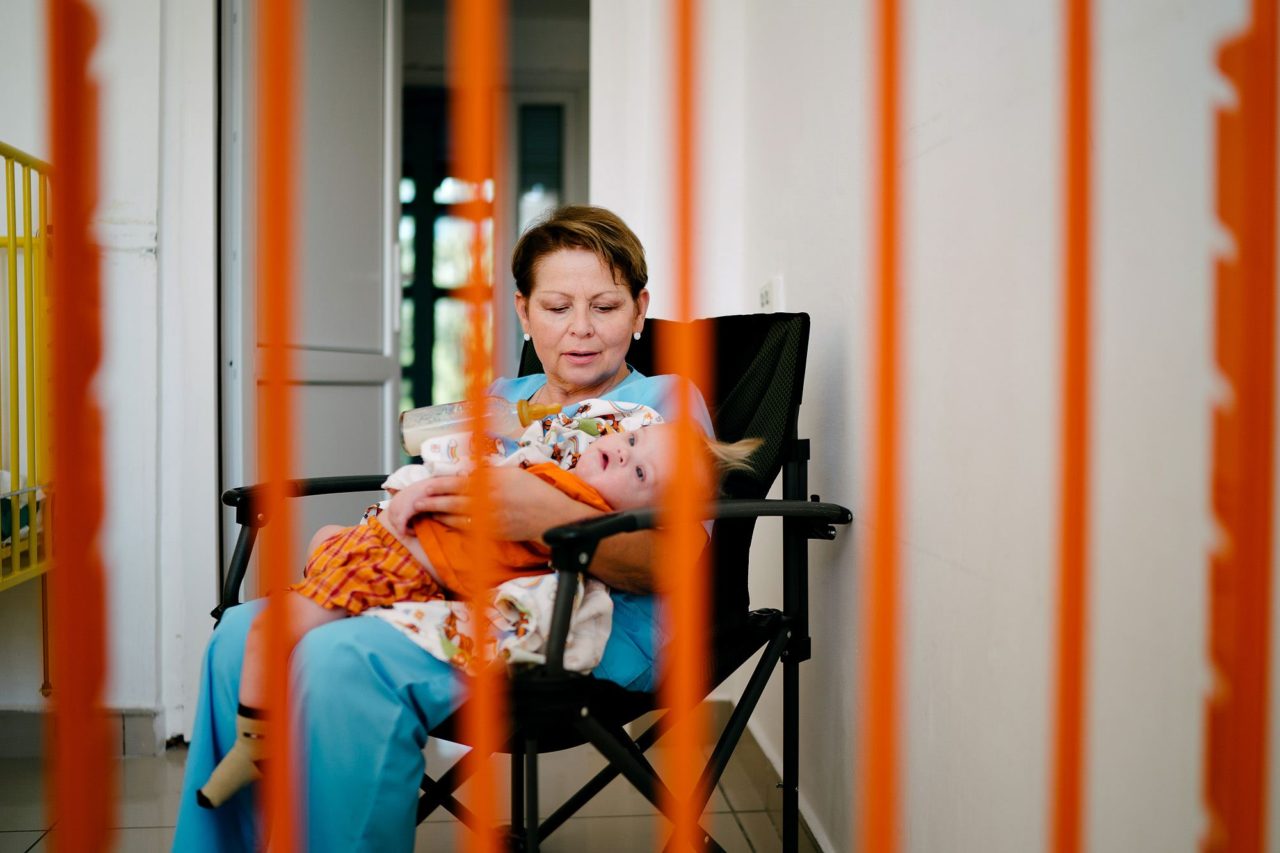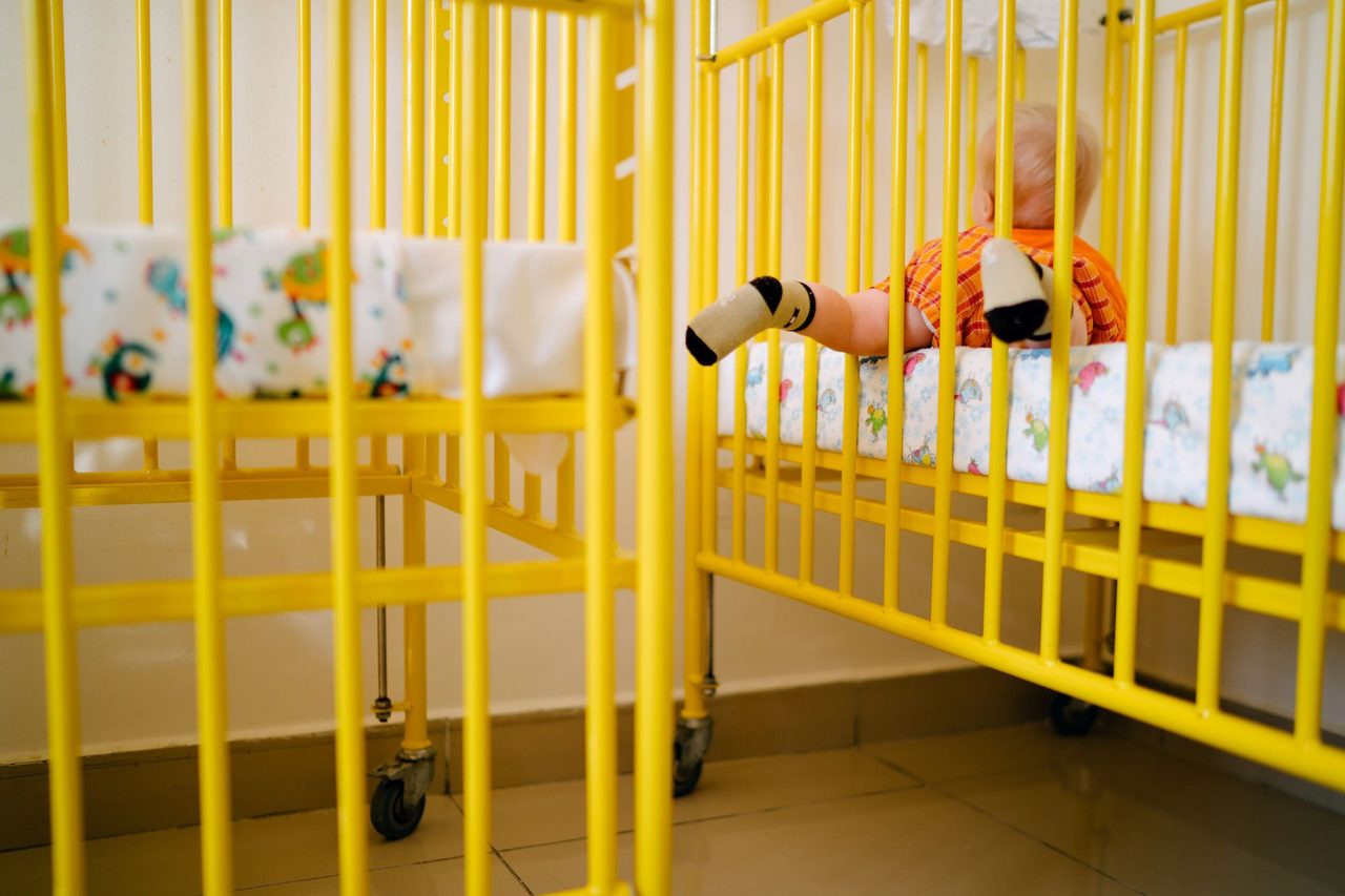 Из открытой двери третьей палаты, самой просторной, положив голову на руку, серьезно и немного хмуро смотрит мальчик. Няни то и дело забегают к нему посмотреть мультики, поиграть и накрыть на стол. Мальчик сегодня будет в палате один, но не потому что провинился — тут никого не наказывают, — просто у него подозрение на кишечную инфекцию. Врачи переживают, что все остальные заразятся. Их одиннадцать, и половина — груднички. А недавно, в марте, няни сбились с ног: у них было двадцать пять подопечных.