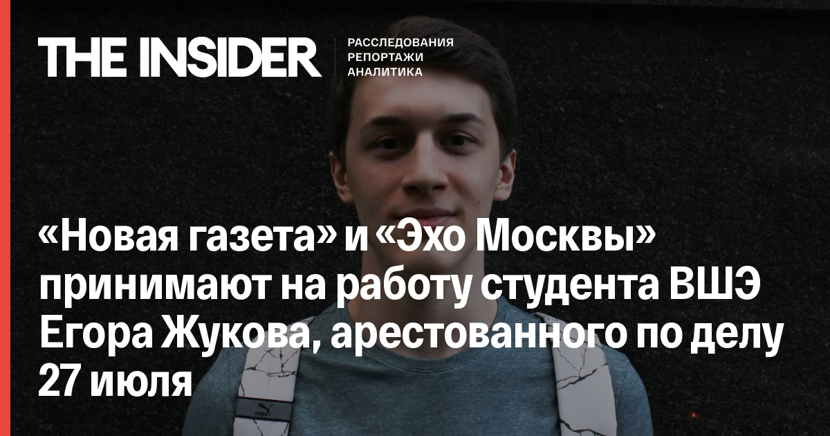 «Новая газета» и «Эхо Москвы» принимают на работу студента ВШЭ Егора Жукова, арестованного по делу 27 июля