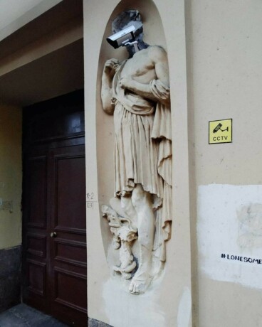 4 августа скульптуру у исторического доходного дома Кирилловых в Петербурге превратили в арт-объект «Пугало». Автор Lonesome_Grass установил вместо головы статуи камеру видеонаблюдения, посвятив инсталляцию показательному «театру безопасности», который не в силах помешать настоящим злоумышленникам.