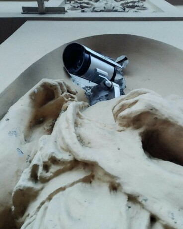 Фото: Камера видеонаблюдения на безголовой скульптуре в Петербурге