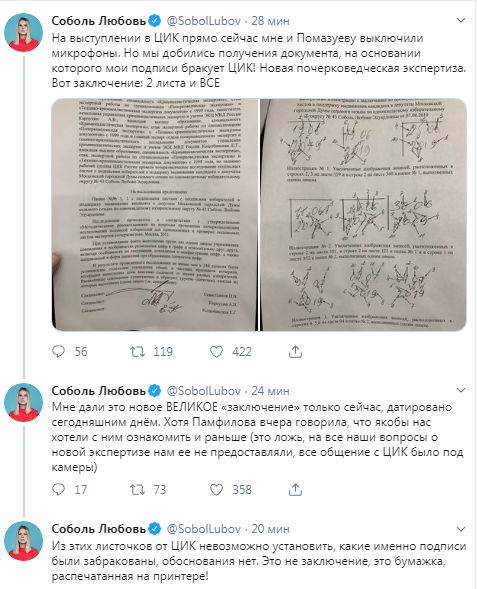 На заседании 7 августа Центральная избирательная комиссия окончательно отказала Любови Соболь в регистрации в качестве кандидата на выборах в Мосгордуму. Члены ЦИК проголосовали единогласно. Для участия в выборах Соболь не хватило 231 подписи.