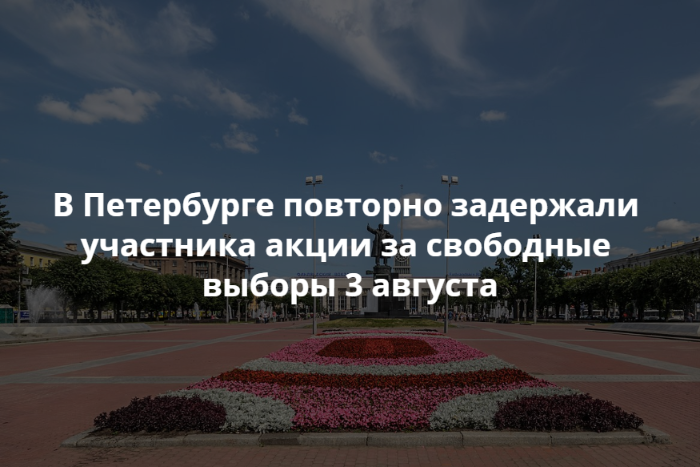 В Петербурге задержали Дмитрия Гусева, участвовавшего в петербургской акции за свободные выборы 3 августа. Об этом сообщается в телеграм-канале «Помощь задержанным СПб».