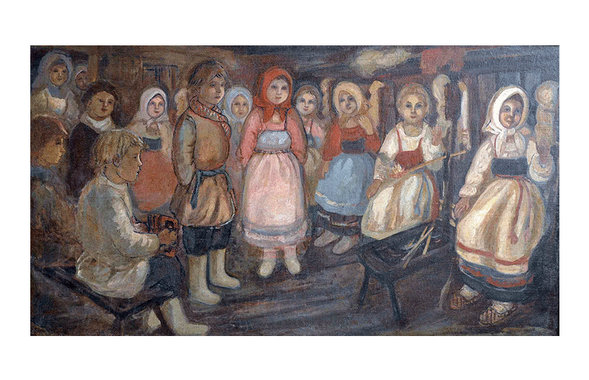 ТС: Честняков учился в Петербурге, в студии княгини Тенешевой, Илья Репин туда приходил на консультации. В результате он овладел профессиональными навыками сначала в тенешевской студии, потом учился в казанской школе — все это вместе можно приравнять к современному художественному училищу. Писать он мог и как мирискусники, и как западные художники того времени, но ему это было не близко. Он попробовал писать и так и сяк, а потом нашел собственную манеру, ни на что не похожую. На мой взгляд, он впервые в русском искусстве ввел живописное произведение в крестьянский быт — прежде картина была принадлежностью городского быта, а у крестьян были только иконы и лубок. Все выдающиеся художники, все академисты, писали на городского зрителя.