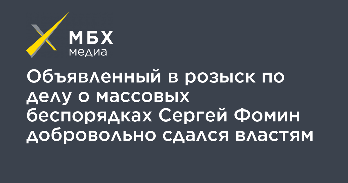 Объявленный в розыск по делу о массовых беспорядках Сергей Фомин добровольно сдался властям
