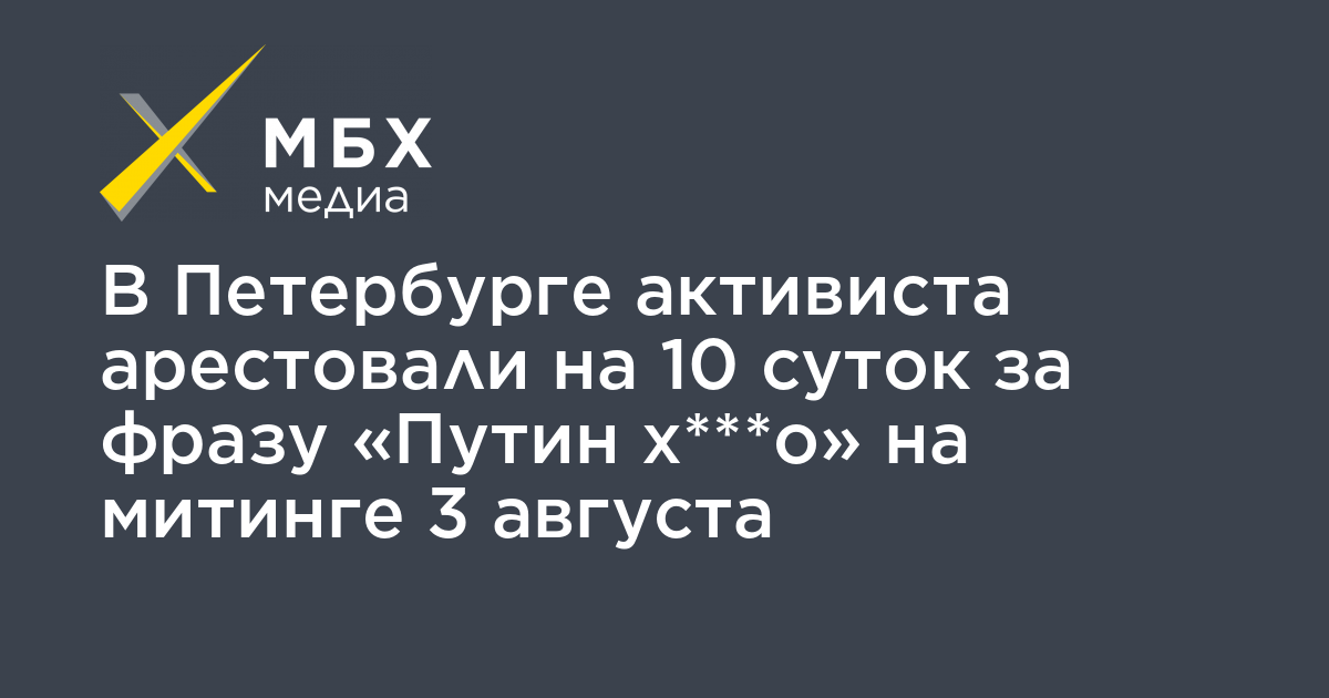 В Петербурге активиста арестовали на 10 суток за фразу «Путин х***о» на митинге 3 августа