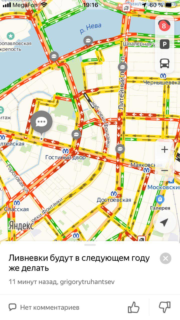 «Ребята, есть кто на лодках?». Что петербуржцы обсуждали в пробках из-за ливня