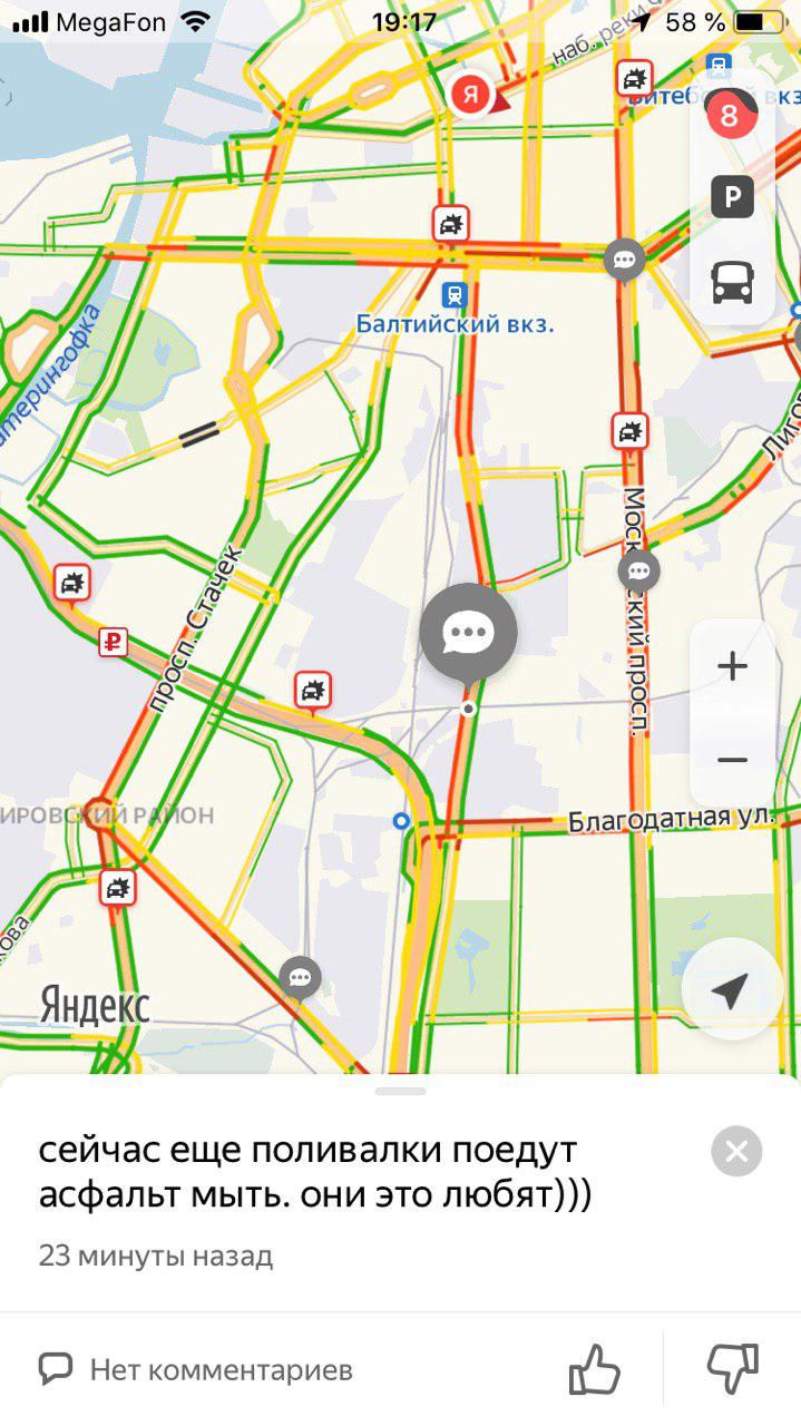 В четверг, 8 августа, в Петербурге образовались пробки из-за сильного ливня. Из-за непогоды увеличился спрос на такси. По данным редакторов «Бумаги», стоимость поездок по некоторым направлениям во время дождя выросла в три раза.