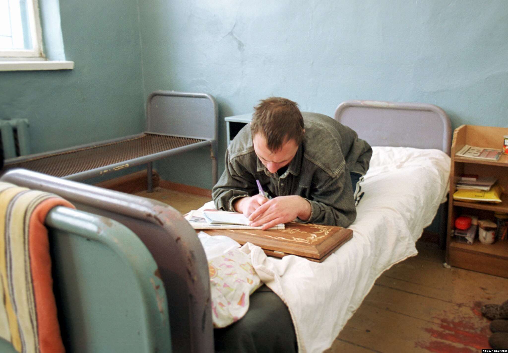 Руки и ноги человека привязывают к кровати, грудь тоже привязывают. Он ходит под себя, ничего не ест. Жизнь поддерживается только капельницами