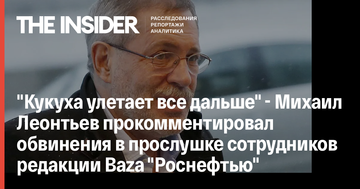 Пресс-секретарь «Роснефти» Михаил Леонтьев считает неадекваными обвинения со стороны Baza, в том что служба безопасности госкорпорации прослушивает телефоны сотрудников проекта. «Комментарий по поводу душераздирающих воплей с Базы. Цитирую: «Аккумуляторы наших устройств стали садиться быстрее«. А кукушка, кукуха стала улетать чаще и дальше. Галяк на Базе. Все. Как они там. Все, ау! Соболезную. Что еще можно комментировать?» - сказал Леонтьев The Insider.
