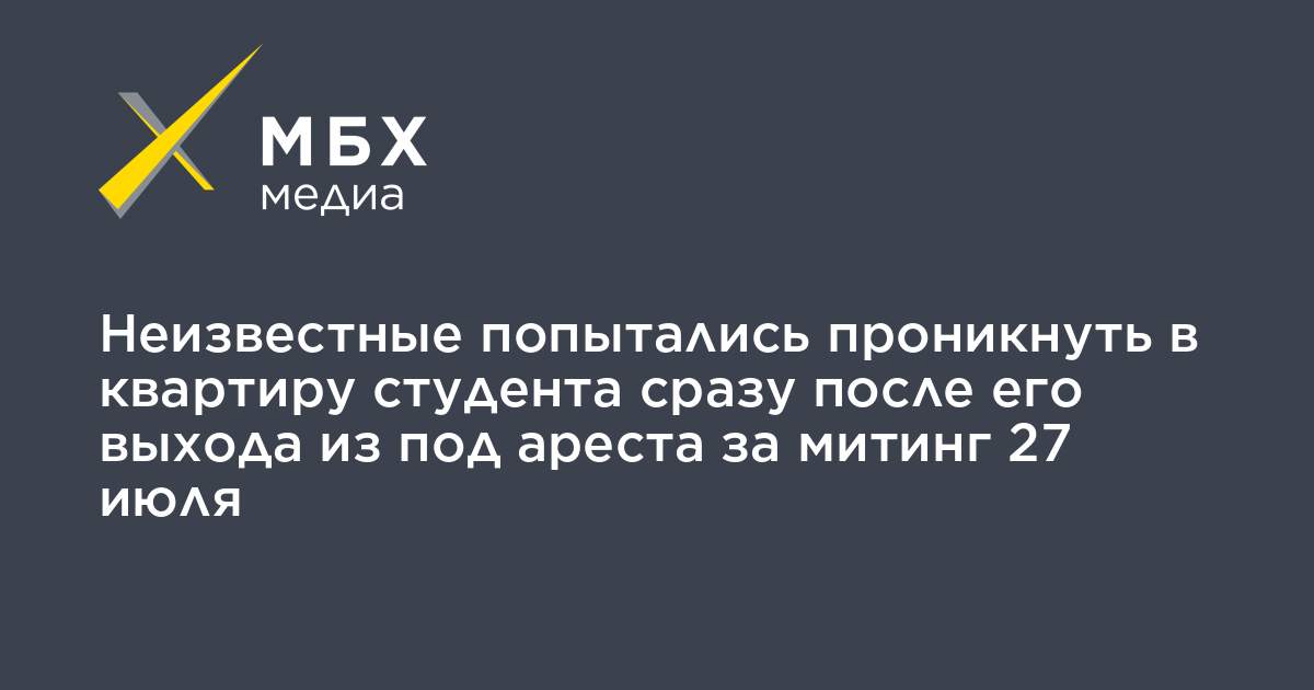 Неизвестные попытались проникнуть в квартиру студента сразу после его выхода из под ареста за митинг 27 июля